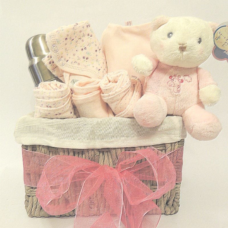 Gran regalo para recién nacido(a), contiene lindo peluche para bebe, 5 prendas 100% algodón, body, camiseta, pantys, practica mamadera, todo en un maravilloso canasto para organizar
