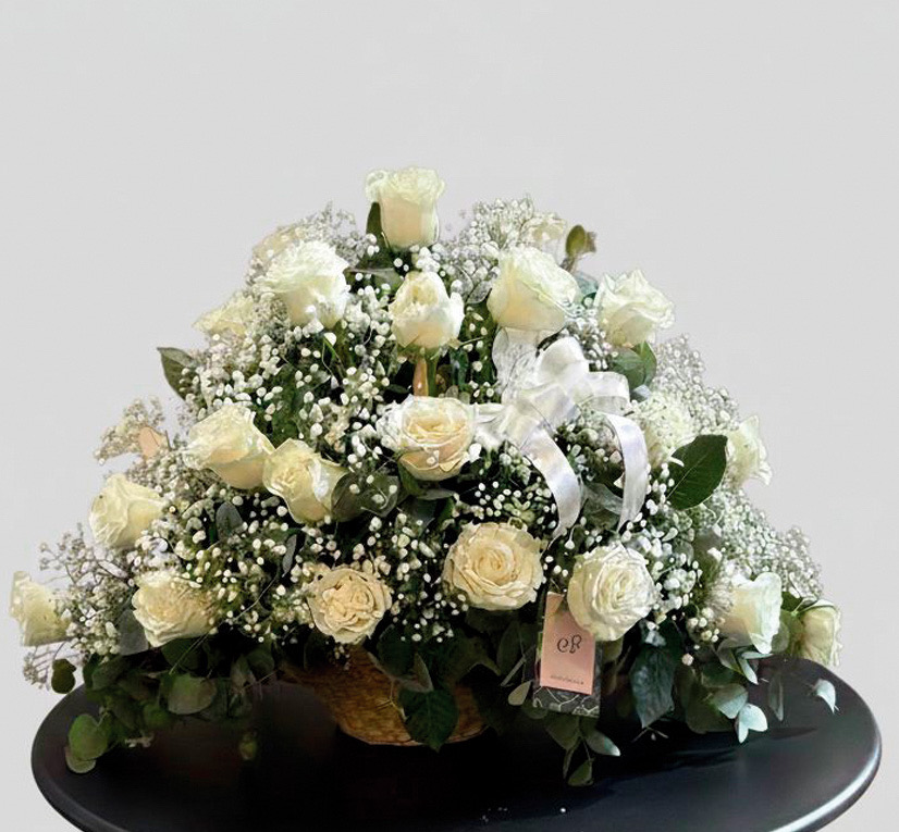 Compuesto principalmente por 25 rosas blancas de alta calidad, símbolo de paz, pureza y descanso eterno, este arreglo se complementa con delicadas flores de gypsophila (velo de novia) y follaje natural, logrando una composición armónica, sobria y luminosa. Cada flor es seleccionada cuidadosamente por nuestro equipo de floristas profesionales para asegurar frescura, duración y una presentación impecable.